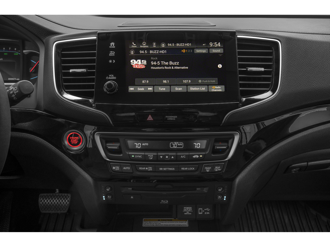 - Radio: 590-Watt Premium Audio System -inc: 10 speakers, subwoofer, Bluetooth® HandsFreeLink and streaming audio, MP3/auxiliary input jack, Radio Data System (RDS), Speed-sensitive Volume Compensation (SVC), 2.5-amp USB charging port (1 port in center console/2 ports on 2nd-row), 8" display audio w/high-resolution touch-screen and customizable feature settings, HondaLink, CabinControl remote compatibility, Apple CarPlay integration, Android Auto integration, SMS text message function, SiriusXM (SiriusXM requires a subscription after any trial period, If you decide to continue your SiriusXM service at the end of your trial subscription, the plan you choose will automatically renew and bill at then-current rates until you call SiriusXM at 1-866-635-2349 to cancel, See our customer agreement for complete terms at www.siriusxm.com, Fees and programming subject to change, Available in the 48 contiguous United States and D.C, SiriusXM and all related marks and logos are trademarks of SiriusXM Radio Inc.), HD radio, wireless phone charger, 2.5-amp USB smartphone/audio interface (1 port in front console), Honda Satellite-Linked Navigation System w/voice recognition and Honda HD digital traffic, advanced rear entertainment system w/10.2" high-resolution screen, Blu-Ray player, built-in streaming apps and 2 wireless headphones, HondaLink subscription services, Wi-Fi hotspot capability, multi-zone audio and CabinTalk In-Car PA system through headphones and speakers